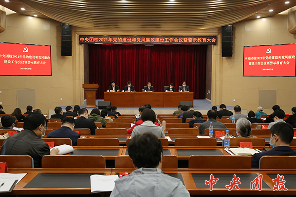 会议传达学习了团中央直属机关2021年党的建设和党风廉政建设工作会议精神,总结了2020年学校党的建设和党风廉政建设情况,安排部署了2021年各项工作,进行了警示教育。