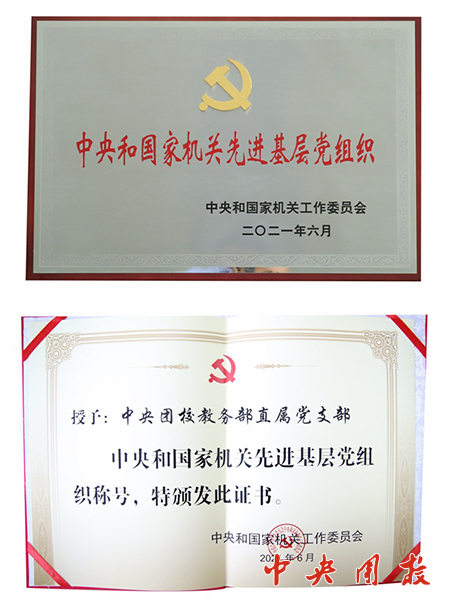 新闻中心讯(姚富宽) 在中国共产党成立100周年之际,中央和国家机关“两优一先”表彰大会于6月24日在北京召开,米兰官网教务部直属党支部荣获“中央和国家机关先进基层党组织”称号。