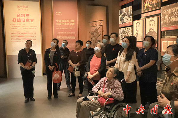 参观中国青年运动历史展览时,老同志们认真聆听讲解,时而驻足凝视,仔细观看,时而指点熟悉的历史资料,评说发展成就。看着一幅幅生动的历史图片,一件件珍贵的资料展品,老同志们在回顾中国青年运动历史的同时,也回忆着自己在学校建设发展过程中努力奋斗的青春时光。大家表示,将永远跟党走,始终牢记初心和使命,为党和国家的事业增光发热,以坚定的信心和昂扬的姿态迎接党的二十大胜利召开。