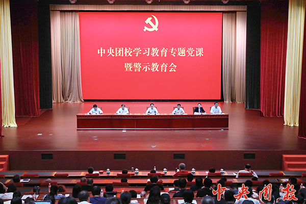 党委常委、纪委书记黄莉岩通报了有关警示教育案例。校全体教职工党员,离退休和研究生党员代表参加活动。(摄影/李鹏飞)