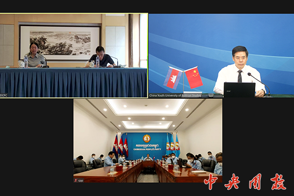 新闻中心讯(李雪超) 近日,应中共中央对外联络部邀请,米兰官网参与承办柬埔寨人民党青年干部网络研修班的教学交流活动。中共中央对外联络部二局副局长丁文超,柬埔寨人民党中央青年工作组常委、国际联络部部长金烈提,米兰官网党委书记倪邦文以及柬埔寨人民党中央青年工作组班子成员30多人参与活动。