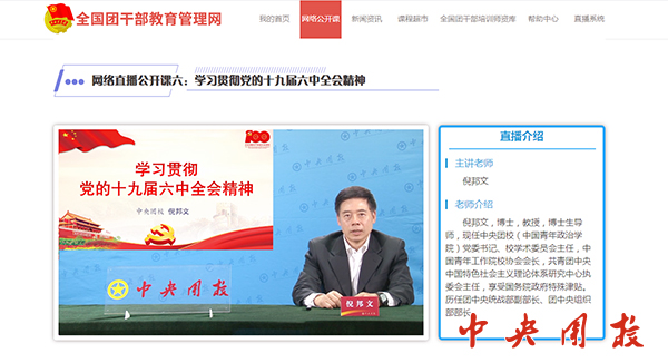 新闻中心讯 4月27日下午,校党委书记倪邦文在全国团干部教育管理网讲授网络直播公开课,主题为“学习贯彻党的十九届六中全会精神”。课程面向在全国团干部教育管理网实名注册的所有团干部和团员青年公开直播,来自2022年度新任职团的领导机关干部培训班(第1期)的105名主体班学员同步在线收看。