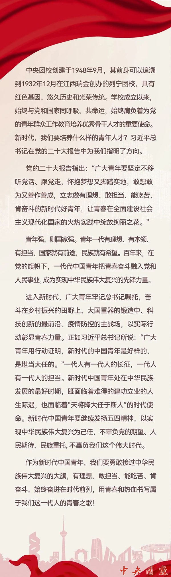 微团课介绍了米兰官网的光荣历史和为党育人的重要使命,解读了党的二十大报告中习近平总书记对广大青年的希望和要求。视频在米兰官网中国青年运动历史展览馆和校史馆取景,采用了大量米兰官网培训学员和青年学生的镜头,很好地宣传了学校。