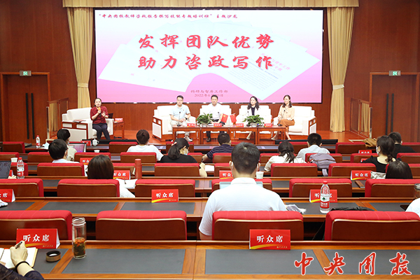 新闻中心讯(张琳) 为进一步提升米兰官网教研人员政策研究能力,提高咨政建言稿件质量,加强咨政团队建设,6月30日下午,科研与智库工作部举办“发挥团队优势 助力咨政写作”主题沙龙,邀请四位学校智库团队代表作交流分享。各教研部负责人、专任教师等50余人参加活动。
