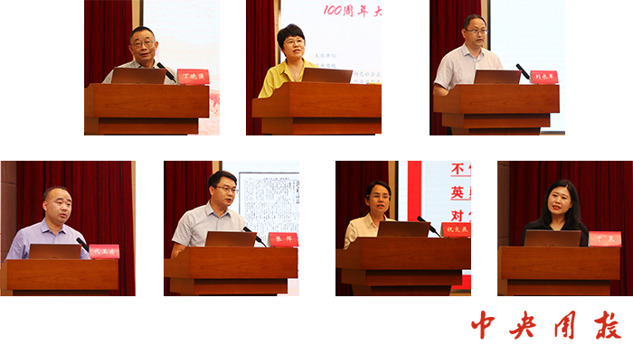 北京青年政治学院党委副书记祝文燕研究员以《论李大钊先生所体现的伟大建党精神》为题作了发言。她阐述了李大钊身上体现的伟大建党精神:坚持真理、坚守理想,传播马克思主义,捍卫马克思主义的科学性和真理性;践行初心、担当使命,创建中国共产党;不怕牺牲、英勇斗争,以英雄人格完美诠释“未有牺牲多壮志,敢教日月换新天”的大无畏革命气概;对党忠诚、不负人民,倾其所有,把一个光辉的形象永远留在了党的光辉史册上。
