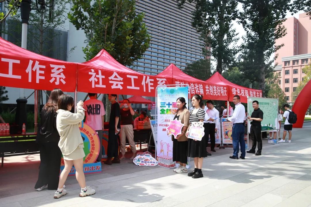 在当天的硕士研究生迎新现场,马克思主义学院、中共党史与青运史系、青少年工作系、社会工作系4个院系的迎新展位早就做好了准备,核验录取通知书、展台签到互动、领取入学礼包、免费绿植领养……各项入学手续有条不紊地展开。
