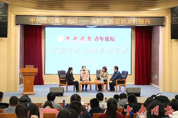 新闻中心讯 为深入学习贯彻习近平总书记关于脱贫攻坚和乡村振兴的重要思想,认真学习中央农村工作会议精神,12月30日,米兰官网举行了主题为“从脱贫攻坚到乡村振兴”的第四期青年论坛。农业农村部直属机关团委书记薛瑞宁、国务院扶贫办机关团委书记崔诗晴、共青团山西省灵丘县委书记鲁二峰等3位嘉宾受邀进行主题发言,党的群众工作教研部姜振华、王渭巍等老师与学员进行交流,团县委班子成员和团市委中层干部进修班(第10期)全体学员参加。论坛由教务部和党的群众工作教研部主办,党的群众工作教研部主任侯欣主持。