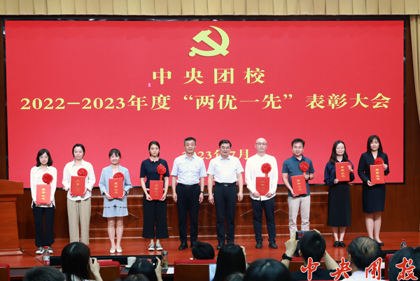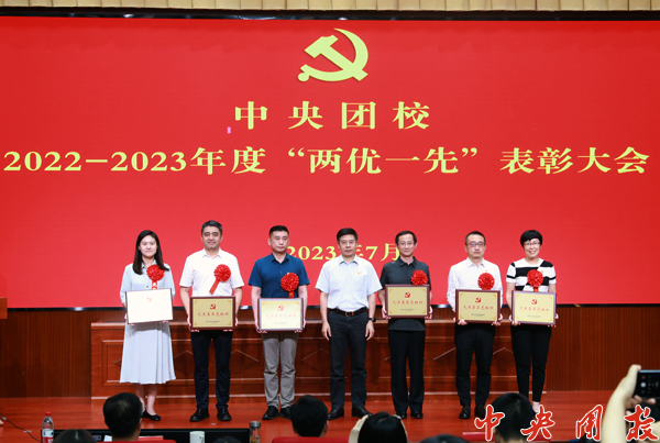 在随后举行的2022-2023年度“两优一先”表彰大会上, 22名优秀共产党员、8名优秀党务工作者和6个先进基层党组织获表彰。5名老党员获颁“光荣在党50年”纪念章。表彰大会由学校党委常委、副校长周雄主持。