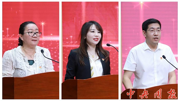 党的群众工作教研部直属党支部书记侯欣、轮训部副主任虞珊珊、教务部教师邓阳分别代表“四强”党支部、“四好”党员、“青年学习标兵”获得者发言。