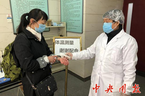 “您好,先测量一下体温,请问您是哪个部门的,请出示您的身份证及火车票进行登记,稍后给您安排房间。”1月29日,在学子三号楼健康观察区门口,值班人员正在为进入健康观察区的第一批人员测量体温,登记入住,开始为期14天的健康观察。