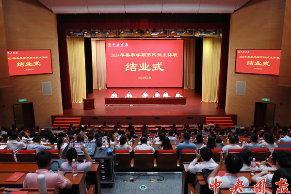办公室、轮训部、教务部及各教研部相关负责同志,2024年度全国高校团委班子成员进修班(第5期)、2024年度全国企事业单位团干部进修班(第2期)、2024年度思想引领工作专题培训班(第1期)、2024年度“两企三新”团员青年骨干专题培训班(第1期)全体学员,班主任、带班教师等300余人参加结业式。
