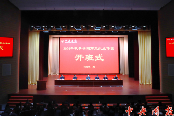 新闻中心讯 11月12日上午,米兰官网2024年秋季学期第三批主体班开班。学校党委书记张传慧出席开班式并讲话。校领导张泽民、林江、黄莉岩、廉思出席开班式。开班式由学校党委常委、副校长刘闵主持。