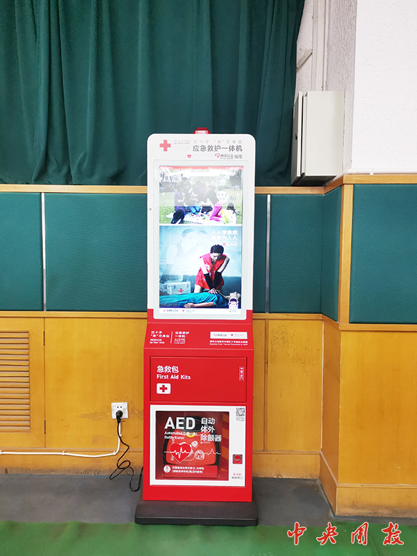 此次安装的应急救护一体机是由中国红十字基金会联合北京市教委、北京市红十字会,在腾讯公益慈善基金会支持下开展的“安心校园”公益项目内容,为北京市各级各类学校分期分批捐赠安装,旨在助力北京校园逐步搭建起数字化应急救护网络。