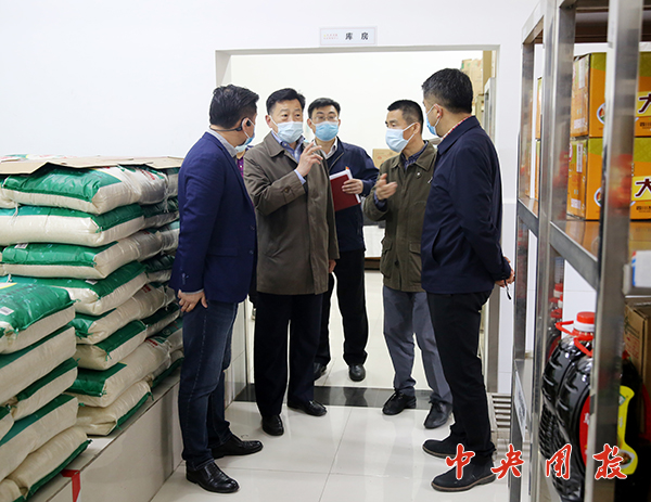 新闻中心讯  4月27日下午,校党委副书记、常务副校长、疫情防控工作领导小组副组长陆玉林,党委常委、副校长、疫情防控工作领导小组副组长周雄,带队深入校门口值班值守岗、学术报告综合楼工人居住区、社区居委会、食堂库房等地,实地督导检查疫情防控措施落实情况。