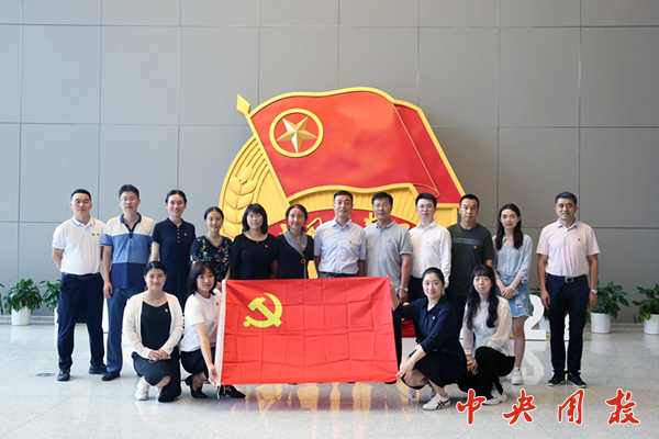 李萌一行实地考察了主题雕塑“理想”、学员报到注册大厅、学员公寓、教学楼、家属区老旧小区改造现场、学术报告综合楼,并参观了中国青年运动历史展览,开展主题党日活动。