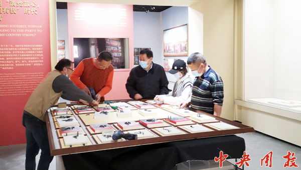 “当时,虽然疫情形势严峻,但是布展工作丝毫不能懈怠。”团中央青运史档案馆副馆长周红说。展览的施工布展,遇到的困难不仅仅是疫情。因为要与展览所在的学术报告综合楼项目施工同步进行,所以双方反复沟通协调,密切配合,压茬推进测量、备料、制作、安装等各项工作。