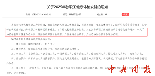 6.健康护航,切实做好教职工体检工作。调研教职工体检需求,对2025年教职工健康体检项目进行优化,体检项目各增加15项的同时通过洽谈降低了体检费用。