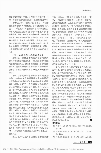 我系教师黄陈晨、董大伟在《理论导刊》2023年第2期发表学术文章《理论·历史·实践:中国共产党青春特质的三重逻辑》。该文认为,立志于中华民族千秋伟业的中国共产党,百年恰是风华正茂。青春特质是中国共产党始终保持朝气蓬勃的“基因密码”,也是党永葆旺盛生命力、实现长期执政的内在力量,具有深刻的理论逻辑、历史逻辑和实践逻辑。从理论逻辑看,中国共产党的青春特质根植于马克思主义青年观,是对无产阶级政党与青年关系理论的继承发展。从历史逻辑看,中国共产党的青春特质熔铸于党的百年奋斗历程,是对百年党史所蕴含的青春动力的延续传承。从实践逻辑看,中国共产党的青春特质发展于党的自我建设中的革新特性,是新征程上开创伟大社会革命和伟大自我革命新局面的必然要求。