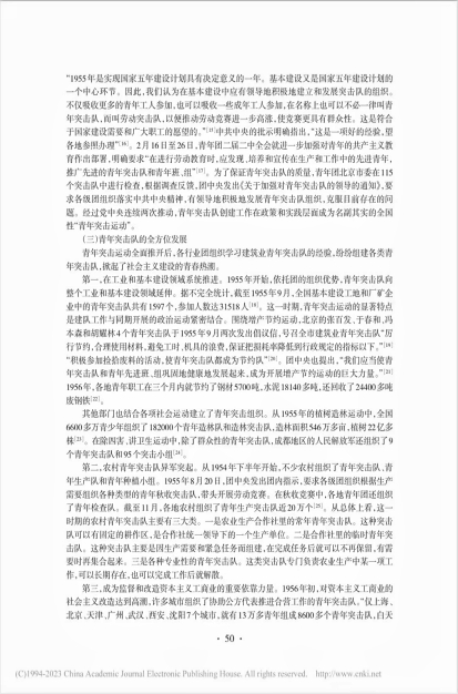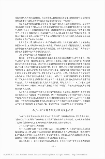我系教师董大伟在《中国青年社会科学》2022年第6期发表学术论文《“一五”时期青年突击队的发展历程与经验启示》。该文认为,青年突击队的成立是我国社会主义建设中的一项创举,也是共青团围绕中心、服务大局的重要体现。长期以来,在中国共产党的领导下,共青团倡导成立青年突击队,并广泛组织一大批团员青年加入青年突击队,引导和动员广大团员青年在生产建设、创新攻关、抢险救灾等经济社会改革发展中发挥积极作用。“一五”时期的青年突击队对新时代中国青年运动具有重要借鉴意义:服务工作大局与照顾青年特点有机融合;积极构建协同高效的组织领导体制机制;及时总结成功经验并应对突出问题;坚持守正创新与借鉴有益经验相结合。