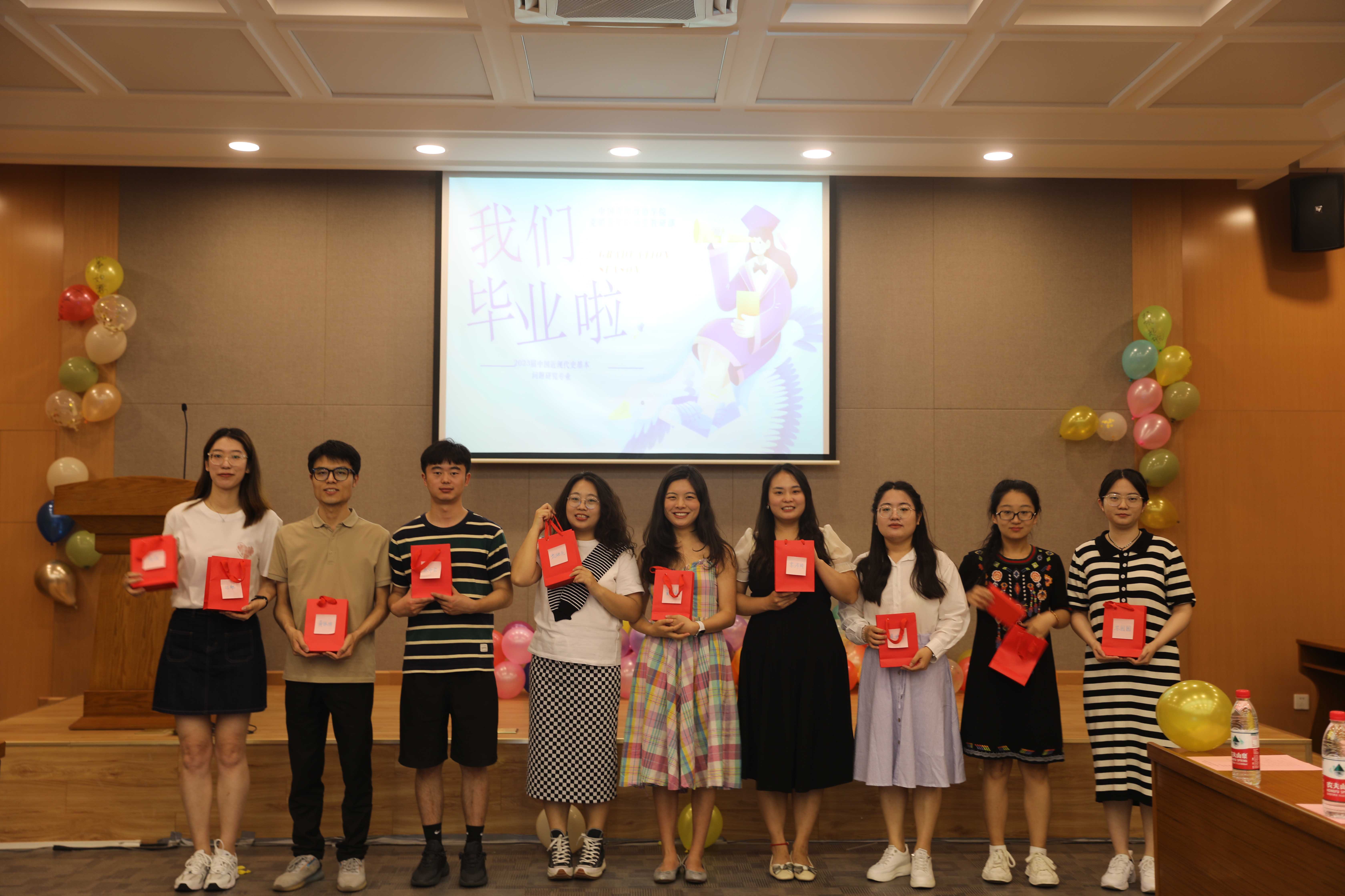 欢送会即将进入尾声时,王冬梅老师代表中共党史与青运史系向毕业生赠送私人订制款姓名印章和纪念相册,希望大家在未来的人生旅途中保持政治底色,一身正气、爱党爱国,保持青春本色,锐意进取、奋斗拼搏,保持青运特色,永立潮头、融入大我。最后,全体师生合影留念,欢送会在《我们都是追梦人》的合唱中落下帷幕。