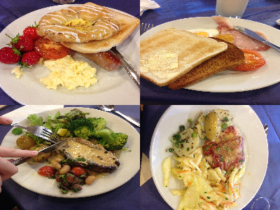 在来英国前,就常听到别人调侃英国无美食。在这段时间里,我们的伙食基本由Hertford食堂提供。至于饭菜如何,对我而言,我表示很满意!每天午晚餐,食堂会尽量不重样。最受好评的就是每天的早餐了,典型的British breakfast,相当丰盛!而午晚餐也会提供蛋糕甜点,虽然是热量炸弹,但我仍抵抗不了诱惑。在这段日子里,我们也深深地感受到,土豆对于英国人的重要就相当于米饭之于中国人,有趣的是,他们对土豆有很多种做法,我都觉得很好吃,尤其是油煎过的带皮小土豆,吃的时候撒点胡椒和盐,简单的料理但却很美味。但有时候也会出现一两道受大家强烈吐槽的黑暗料理。