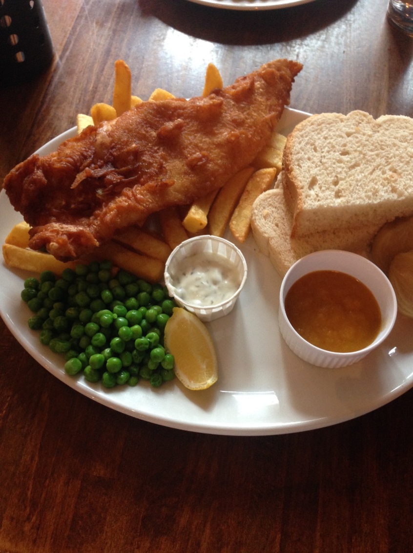 在英国,我也终于尝到了传说中的Fish & chips,和想象一样好吃,价格在8磅左右。说到价格,英国在吃方面,牛津的普通餐厅一般人均价格都在8磅以上,餐馆价格比国内的要贵很多,这也让我看到了在牛津开一家中国风味的餐厅的无限商机。