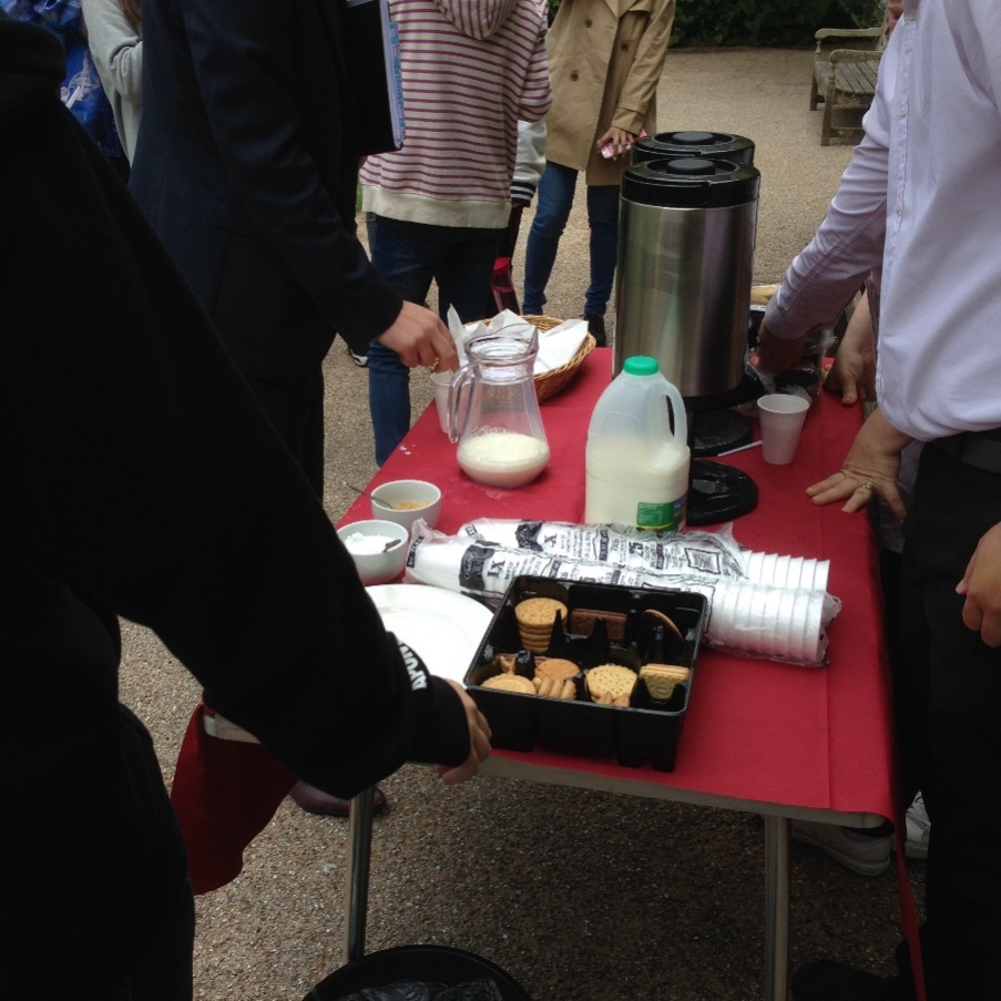 此次来英国的最主要任务是学习。在牛津这段时间里,我们每周周一到周五上课,周六日自由时间休息。上课时间节奏紧凑,早晨9点上课到中午12点半,从学校走回食堂和宿舍大约花费20分钟,下午2点开始上课到4点结束,所以一般吃完午饭后基本没有什么午休时间,稍微整理下就得去上课了。在早上那段上课时间里,会有中途休息30分钟,学院这边会为我们准备饼干热饮,这30分钟无疑是最让我们享受的时候:捧着一杯热乎乎的奶茶,配上一两块甜甜的饼干,坐在院里的凳子上或者站在草坪上,沐浴着温暖的阳光,和周围的伙伴们或老师聊天说笑,真的超级舒服!