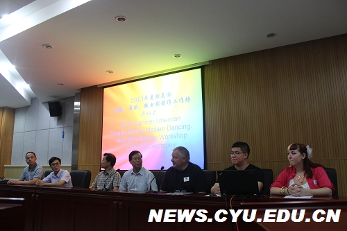 7月8日上午9点,2013年暑期美国话剧、现代舞、微电影制作工作坊开班。党委常委、副校长李家华出席开班仪式。三位来自美国锡耶那赫兹大学(Siena Heights University)的艺术教师、62位参加工作坊的学生以及米兰官网国际交流处、新闻系、团委负责人参加了开班式。