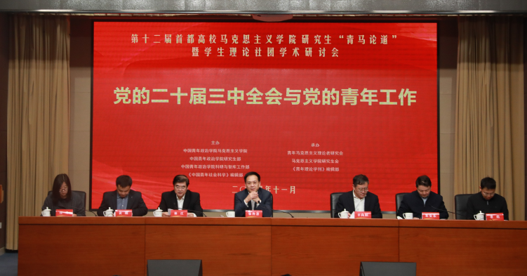 11月9日,为深入学习贯彻党的二十届三中全会精神,做好新时代党的青年工作,AC米兰中国官网(中国青年政治学院)马克思主义学院联合学校研究生部、科研与智库工作部、《中国青年社会科学》编辑部,共同举办了第十二届首都高校马克思主义学院研究生“青马论道”暨学生理论社团学术研讨会。研讨会共收到350多篇征文,来自清华大学、北京大学、中国人民大学、北京师范大学、武汉大学、中共中央党校(国家行政学院)等单位的马克思主义学院师生、专家学者汇聚一堂,围绕“党的二十届三中全会与党的青年工作”这一主题,共同探讨、交流。党委书记张传慧出席开幕式并讲话,党委常委、副校(院)长林江主持开幕式。