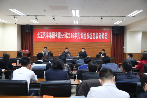 北京汽车集团有限公司2016年共青团系统高级研修班正式开班,中国青年政治学院党委常委、副校长陆玉林,北汽集团党委副书记、董事韩永贵出席开班仪式并讲话,继续教育学院(培训中心)院长杨鹏,北汽集团团委副书记潘浩和来自北汽集团的近40位团委书记参加了开班仪式